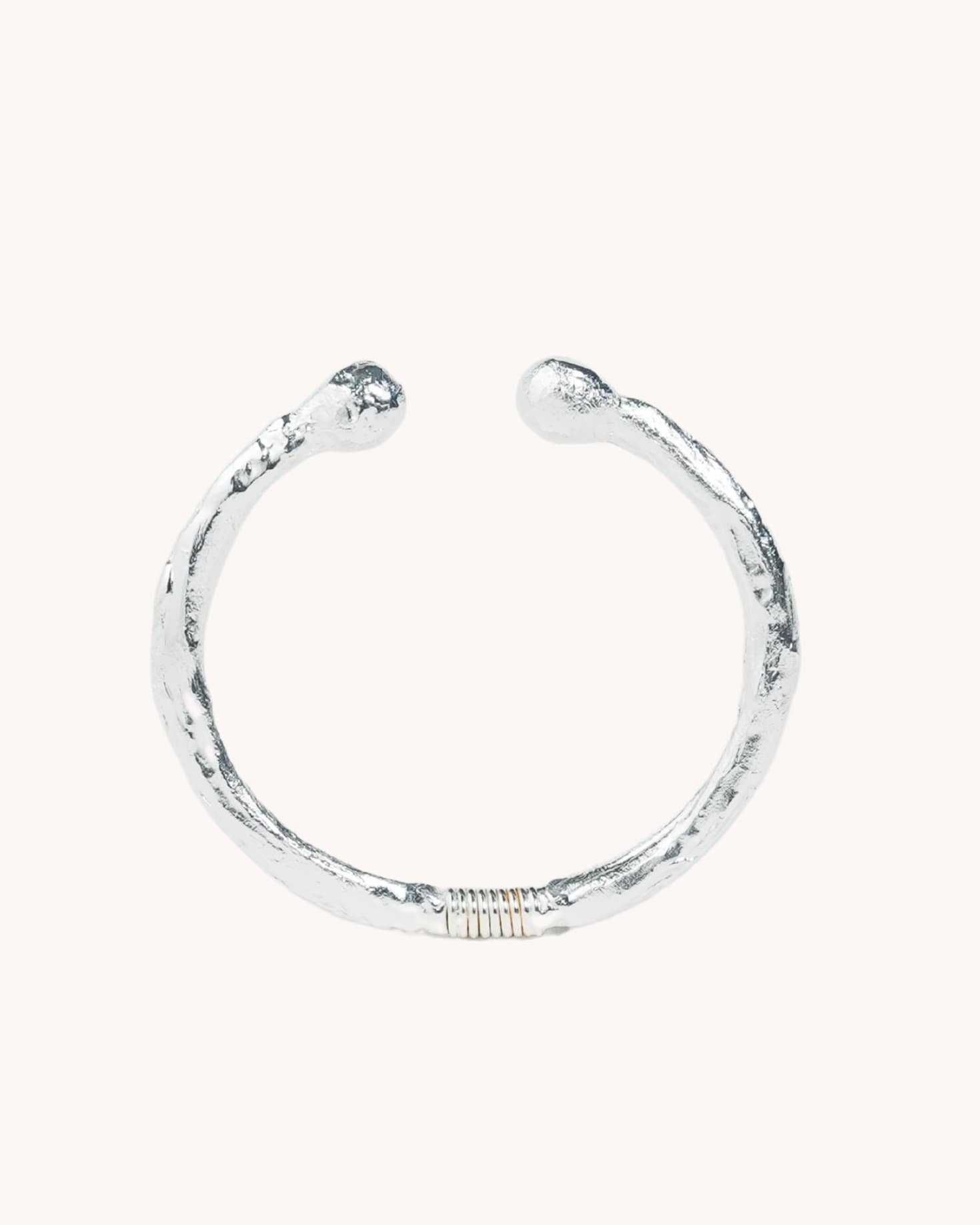 Bracelet with two balls at the ends, open and with a flex spring for better opening.