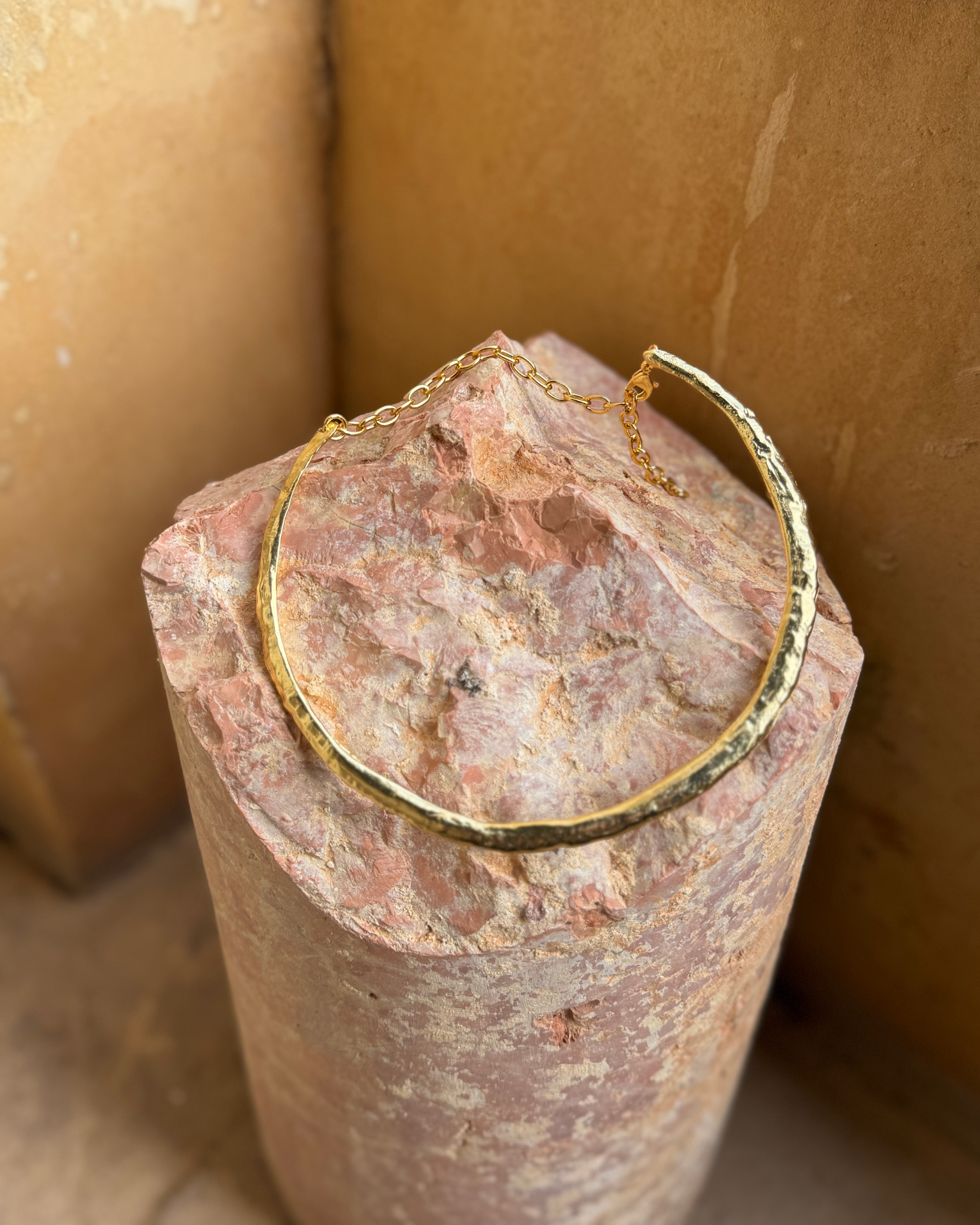 Este collar gargantilla rígido y redondo de la colección La Pomada es sinónimo de versatilidad y diseño con su textura orgánica irregular. Combínalo con toda nuestra colección de pendientes.